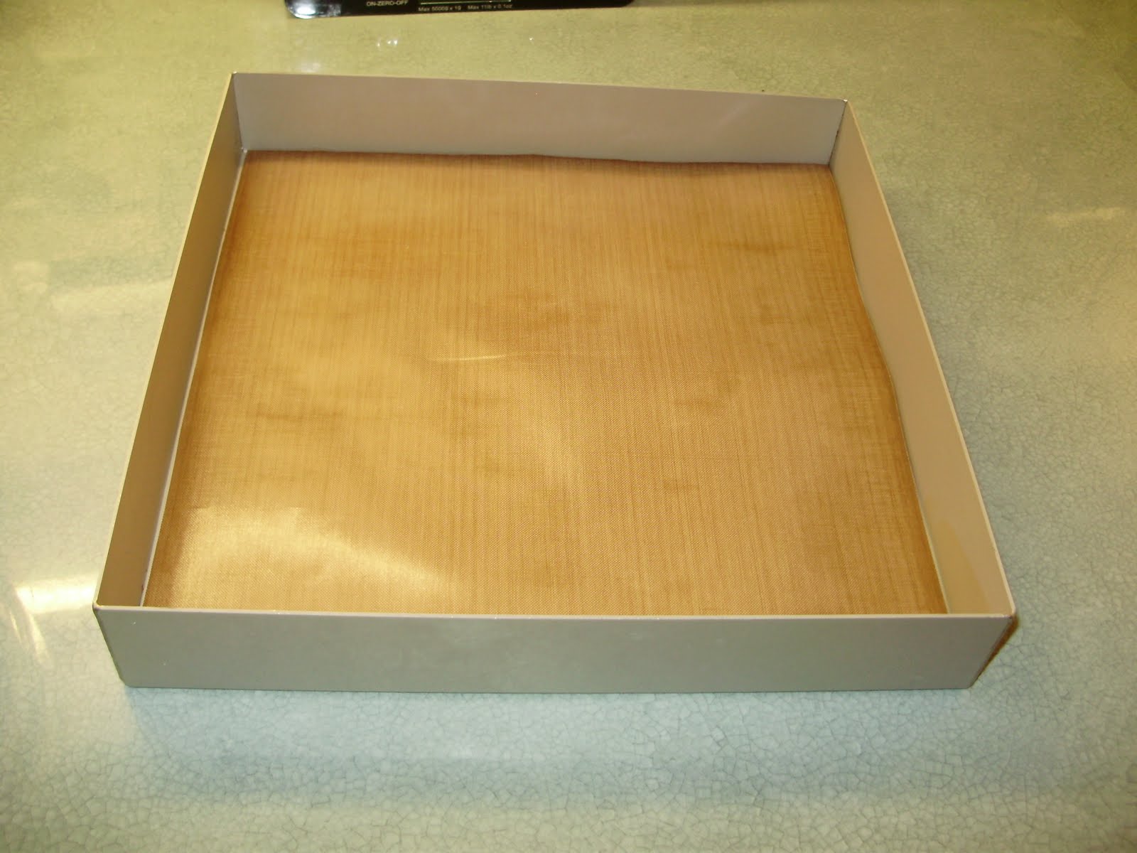 Prepare a 20cm square cake tin - I use a Silverwood loose bottomed tin, and I find I only need to line the base (which I do using Lakeland reusable baking liner). I don't find I need to grease this, so as I keep the liner in the tin, it's always ready to use.
