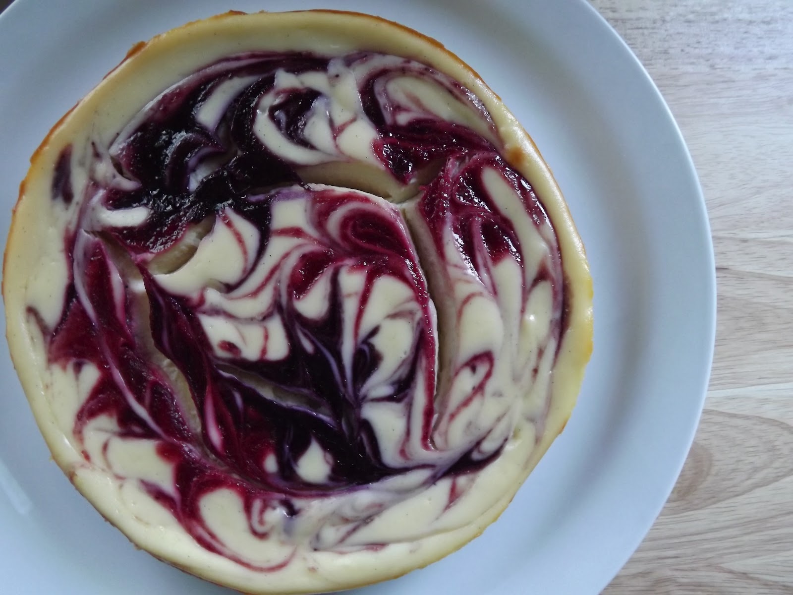 Ideally, cheesecakes shouldn't crack, but mine did slightly following the lines the knife made creating the swirls. If you look closely at the picture you'll see what I mean. This didn't affect the taste, though.